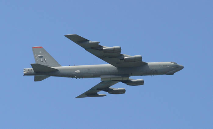 On Saturday, this B-52 made two passes on Kaneohe. Are those bomb bay doors open????