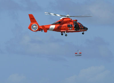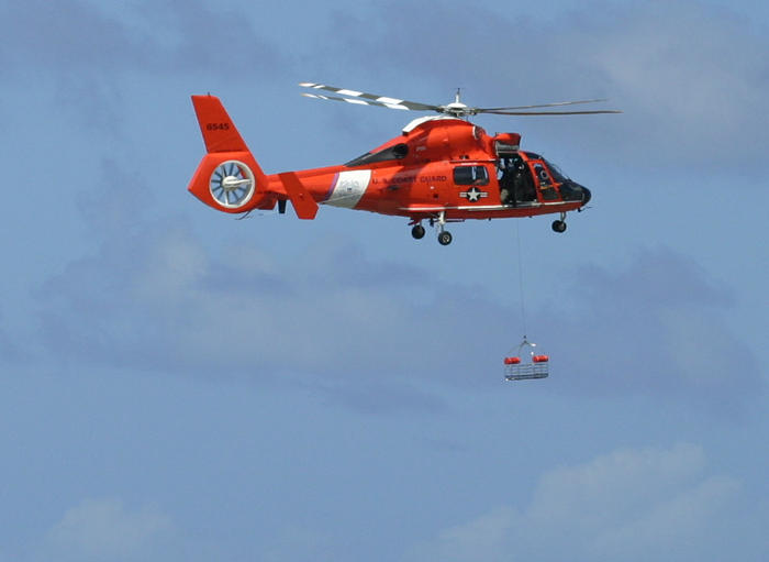 The U.S. Coast Guard presented a simulated helicopter rescue