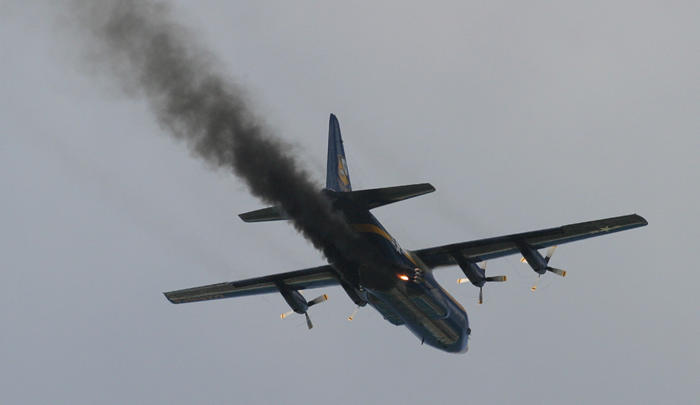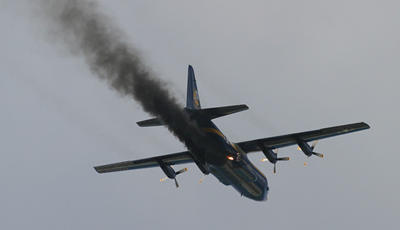 The Blue Angels C-130 "Fat Albert" at the top of a JATO takeoff-- very impressive