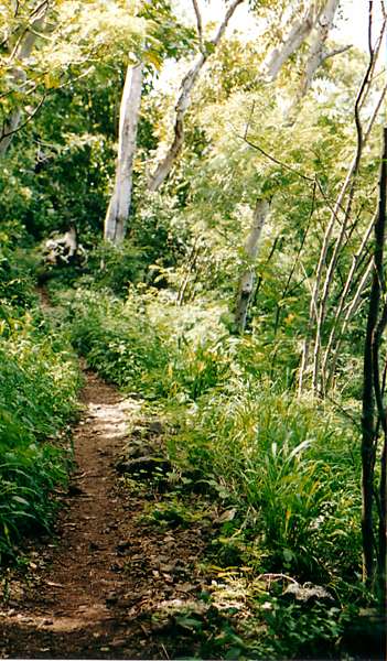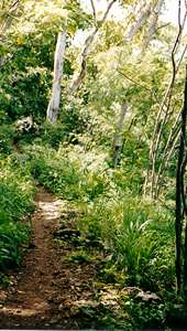 you see the trailhead in the photo to the right. Stay to the left of the large