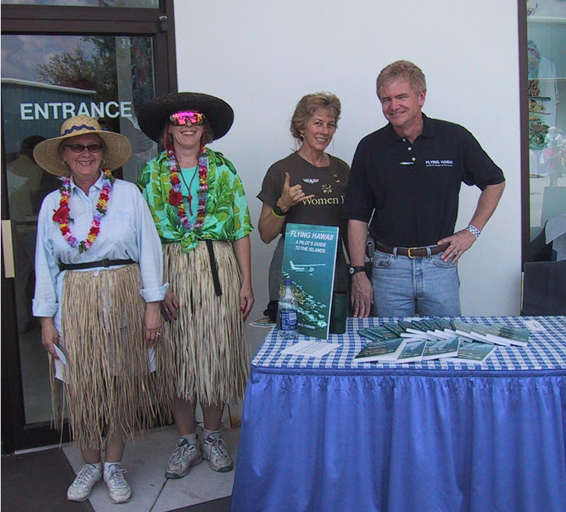 by to say "Aloha", and two Sun 'n Fun volunteers dressed